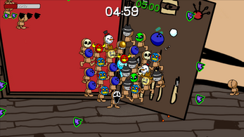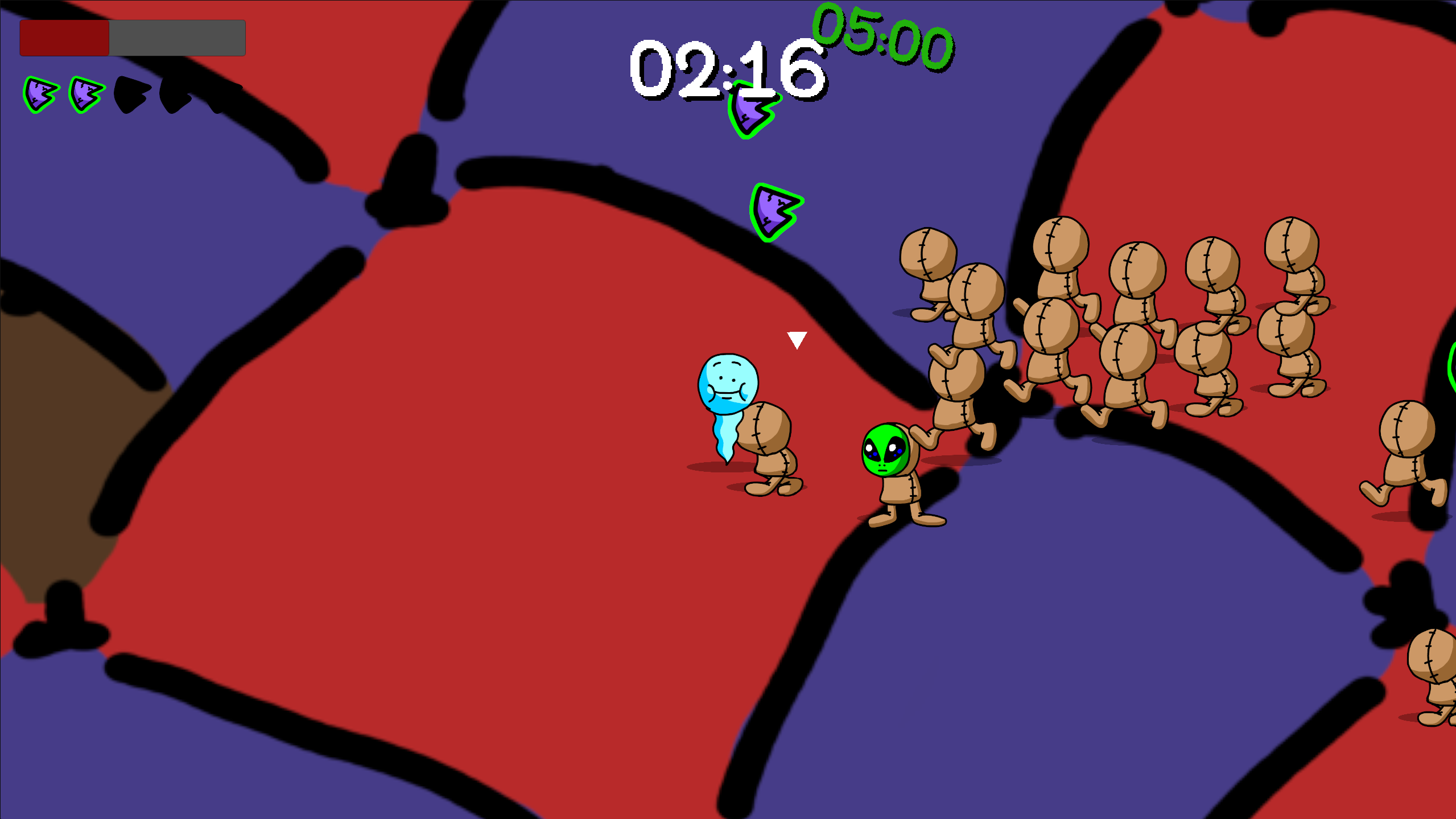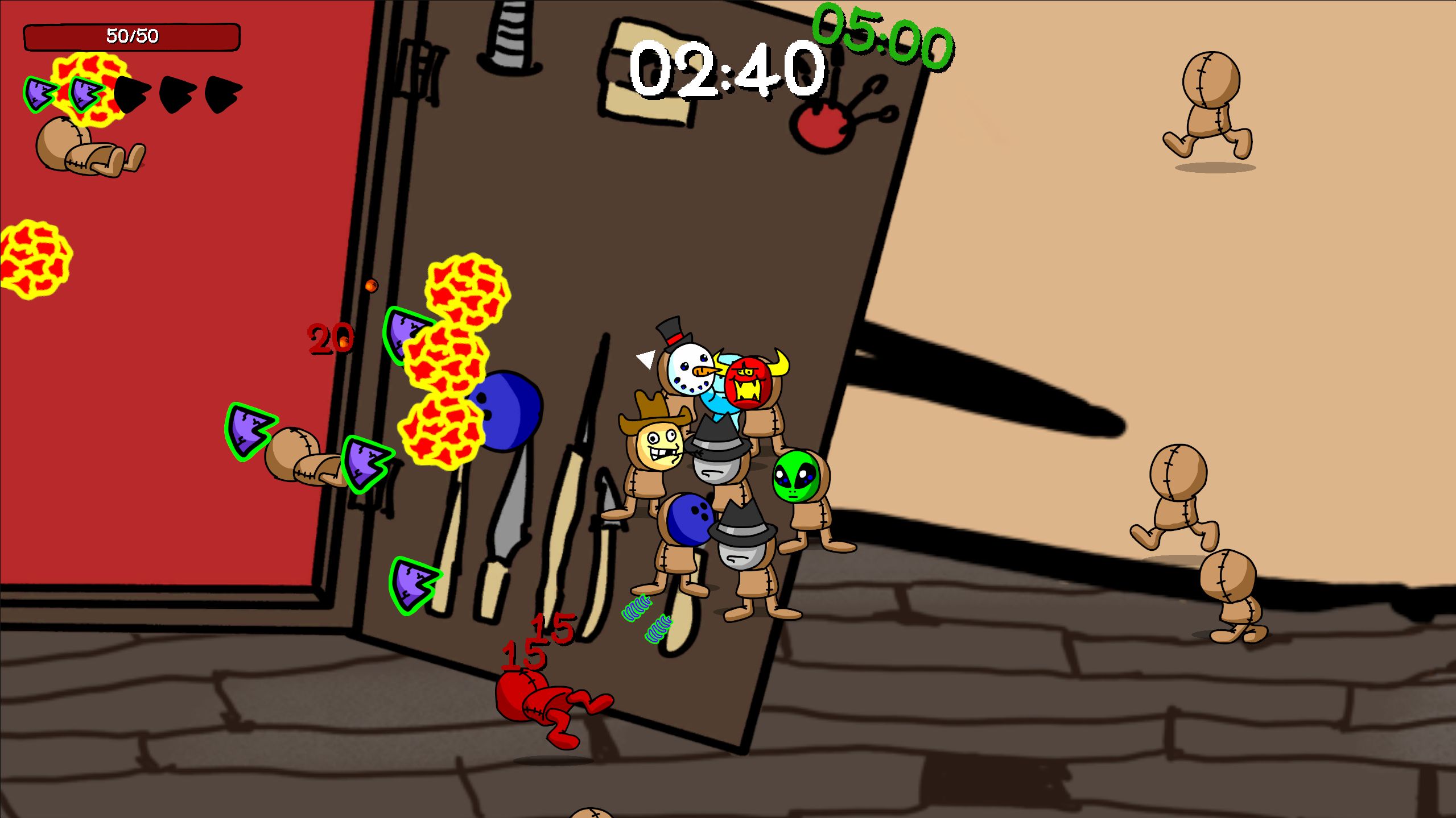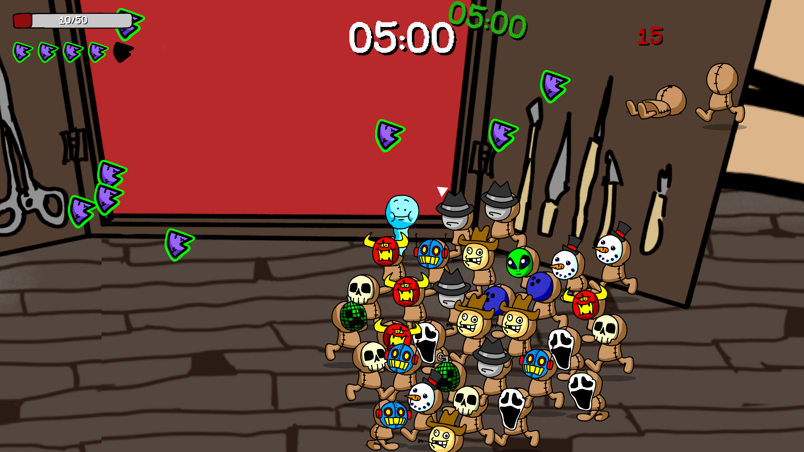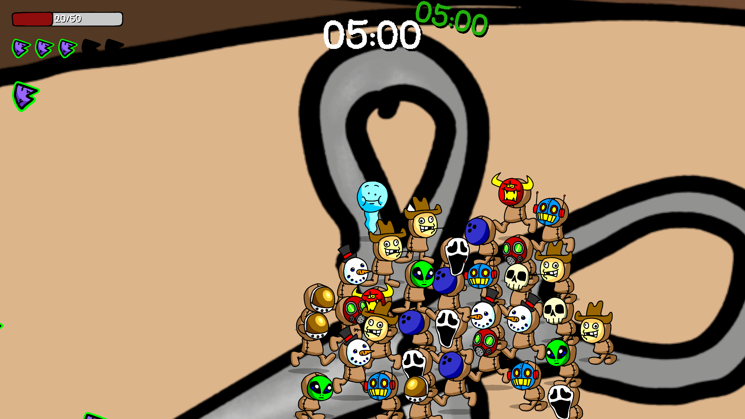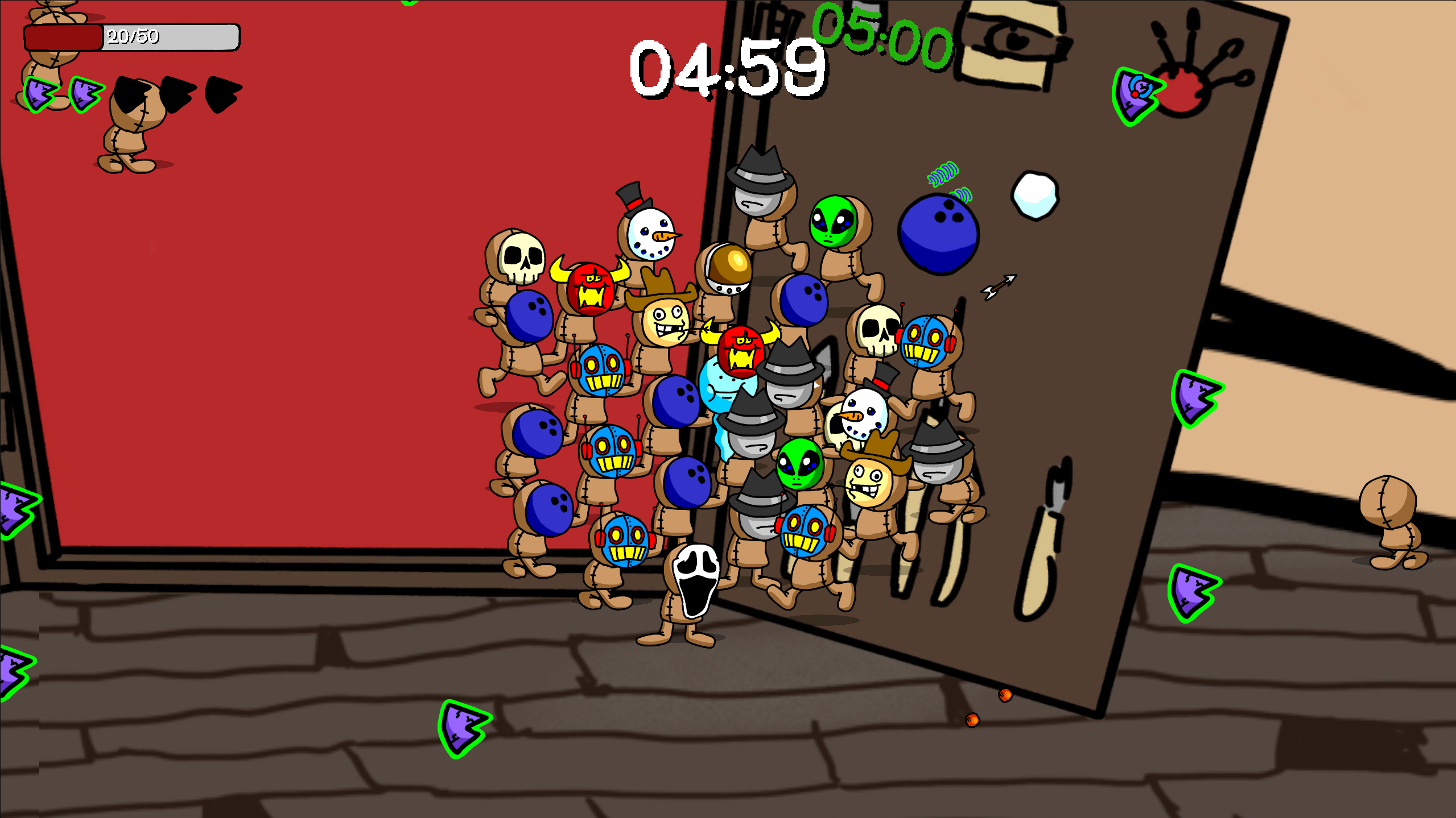 Defeat enemies and collect mask pieces. Collect 5 mask pieces to obtain a random mask. Throw a mask at an enemy to make them fight for you!